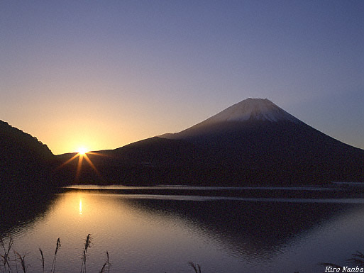「 閃光!本栖湖 」 この時期は、富士五湖は朝はガスがかかるので、高い位置からは良いのが狙える。そう思って新道峠へ行こうとしたが、起きるのが遅く、本栖へたどり着くのが精一杯。朝焼けは全く色が付かなかった。でも逆さ富士が見れて良かった。 撮影日時 1999年11月13日 撮影場所 本栖湖/レークサイドキャンプ場脇(地図 No.21) フィルム フジクロームベルビア50 カメラ Pentax 67-II レンズ 90mm F2.8 データー f22 AE -1/3EV