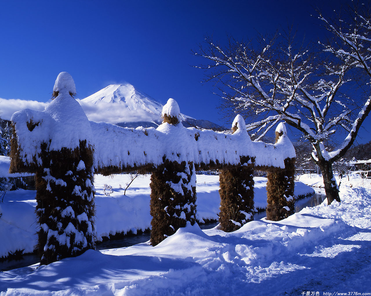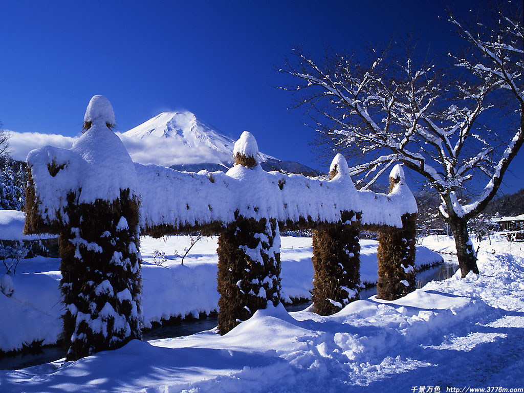 忍野雪景色