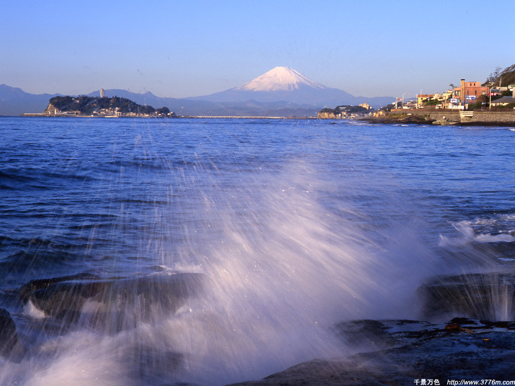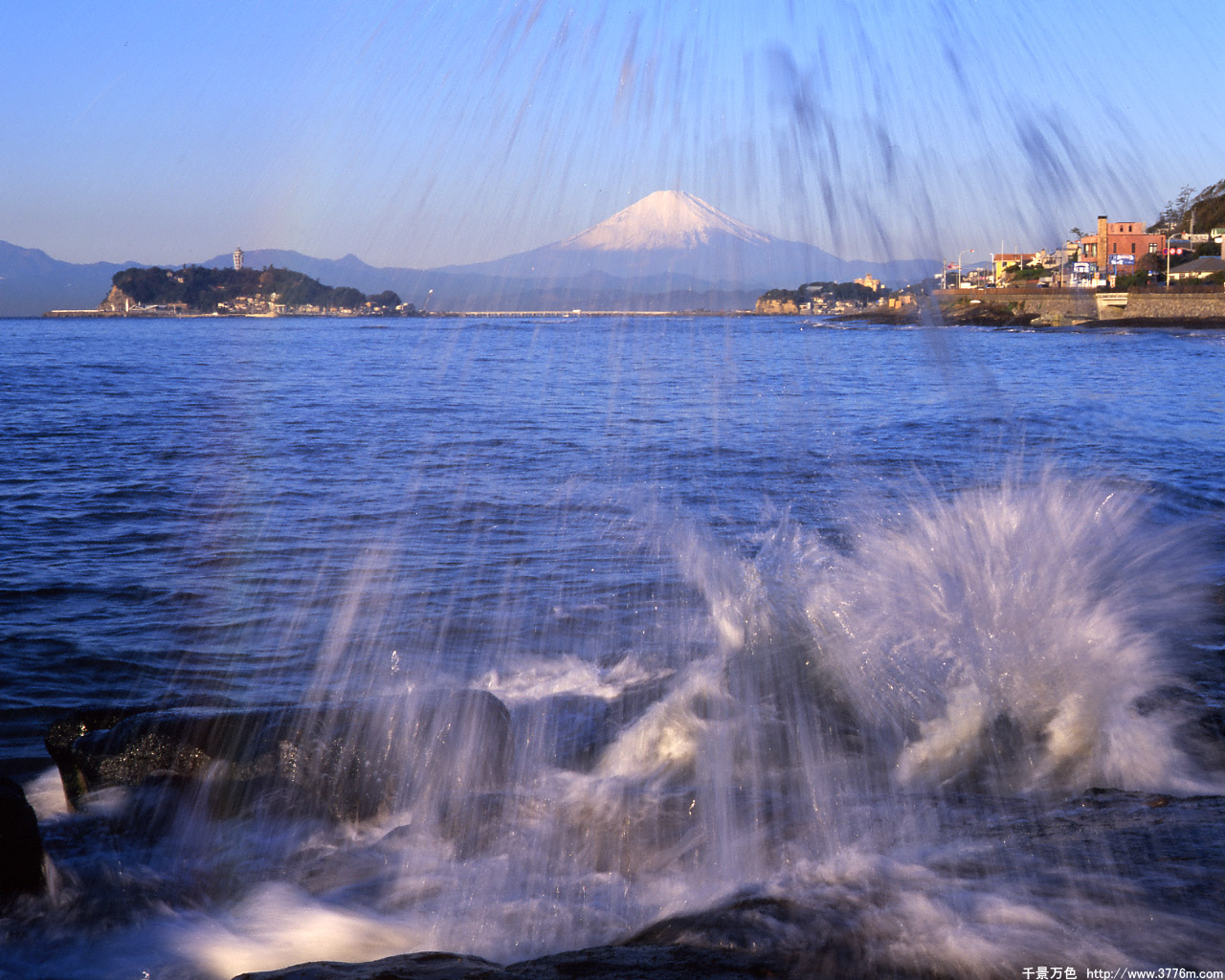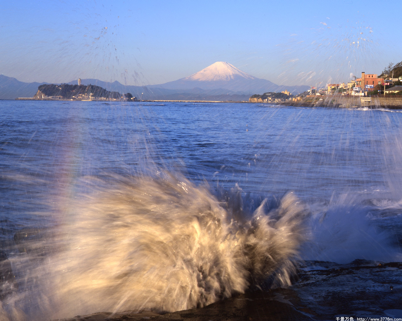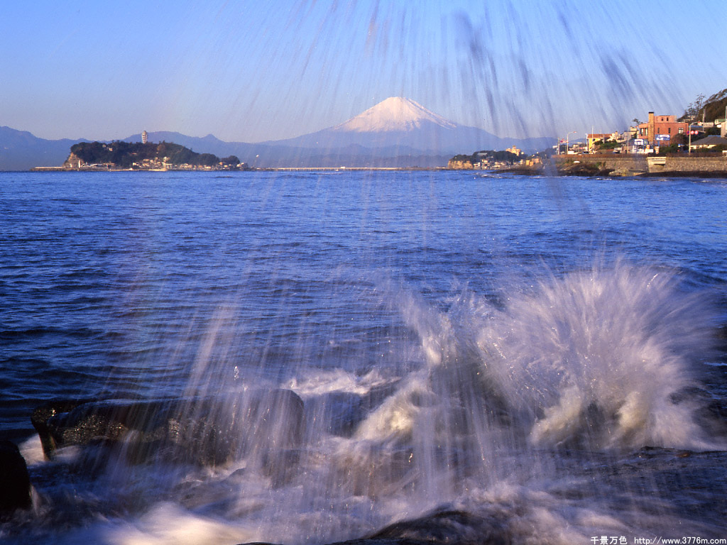 飛沫の彼方の富士